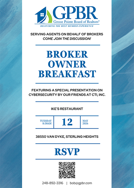 Attendance at Broker/Owner Meetings is by invitation only. Please contact Bob Taylor with questions: bob@gpbr.com or 248-892-3316.
